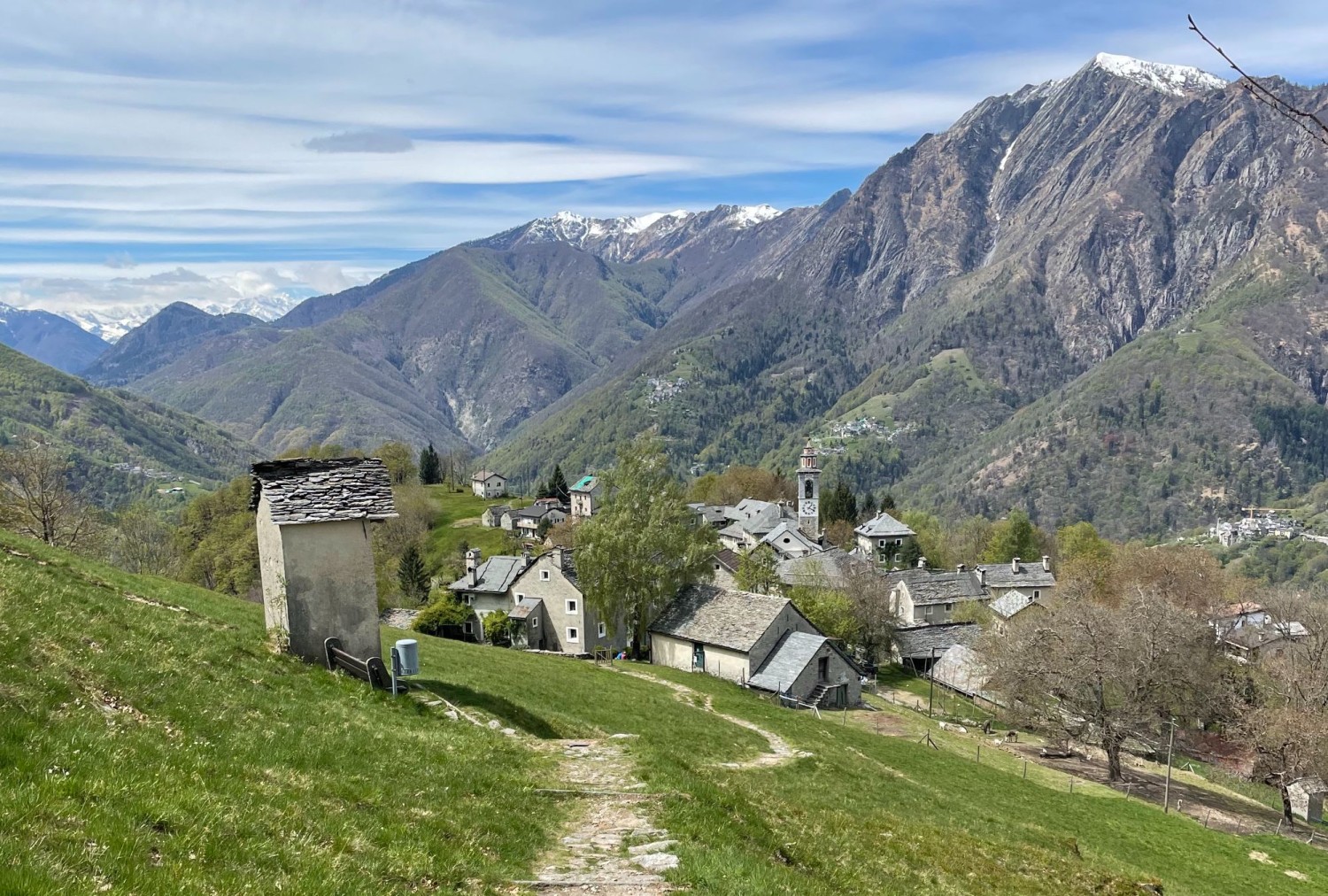 Con passo lento nel cuore delle Centovalli, lungo l’antico filo che unisce piccoli paesi di montagna, storie di emigrazione e nuovi sogni di ritorno alla terra. Dal fondo valle saliamo a Rasa, il villaggio del 16° secolo, senza auto, sospeso su una terrazza di luce, dove il tempo sembra essersi fermato. Le pietre delle case e delle viuzze, la chiesa con l’elegante campanile dedicata a Sant’Anna e i prati tutt’intorno raccontano una vita di emigrazione, fatica e devozione. Da qui camminiamo verso Terra Vecchia, l’antico nucleo di Rasa oggi rinato come luogo di contemplazione e di comunità: un santuario tra boschi e muretti a secco, da cui lo sguardo abbraccia la diga di Palagnedra e la vetta del Gridone. Raggiungiamo Bordei, un piccolo villaggio dal nucleo ben conservato, dove oggi convivono arte, spiritualità e cucina vegetariana. Qui il progetto di Pietro Leemann, pioniere della gastronomia veg* in Europa, ha dato vita a un ecovillaggio e a un ristorante che intrecciano natura, ospitalità e ricerca interiore: ogni piatto è pensato come nutrimento per il corpo, ma anche come gesto di cura verso la terra e tutti gli esseri viventi. Concludiamo la nostra escursione scendendo a Palagnedra, con il suo nucleo raccolto e la chiesa di San Michele del 13° secolo (monumento nazionale), scrigno di affreschi di fine ‘400 di Antonio da Tradate. Poco sopra il villaggio si apre la Riserva forestale di Palagnedra, apprezzata per la straordinaria varietà del substrato geologico e degli ambienti forestali, distesa tra i 650 m e oltre i 2000 m, inclusa nel massiccio del Monte Gridone; un paesaggio di selvaggia bellezza, dove il bosco cresce quasi come in un tempo prima dell’uomo. Rientriamo al punto di partenza con il treno Centovallina, che attraversa ponti e gole come un sottile filo di ferro e sogni, collegando Locarno al Piemonte. Tra panorami sulla vetta del Gridone, incontri con luoghi abitati oggi da artisti, scrittori e piccoli artigiani, e una sosta di gusto “chez” Pietro Leemann, questa escursione sarà un invito a lasciarsi nutrire dalla bellezza: del paesaggio, delle storie, del cibo e del silenzio condiviso.